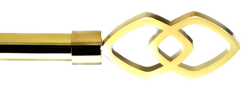 It's bold to be gold, and this selection of delicate decorative drapery hardware is one of our favorite finial and ¾” pole sets - especially with the gorgeous gold brass finish. The diamond links finial, with its unique piece of visual interest, looks like jewelry we want for the window.